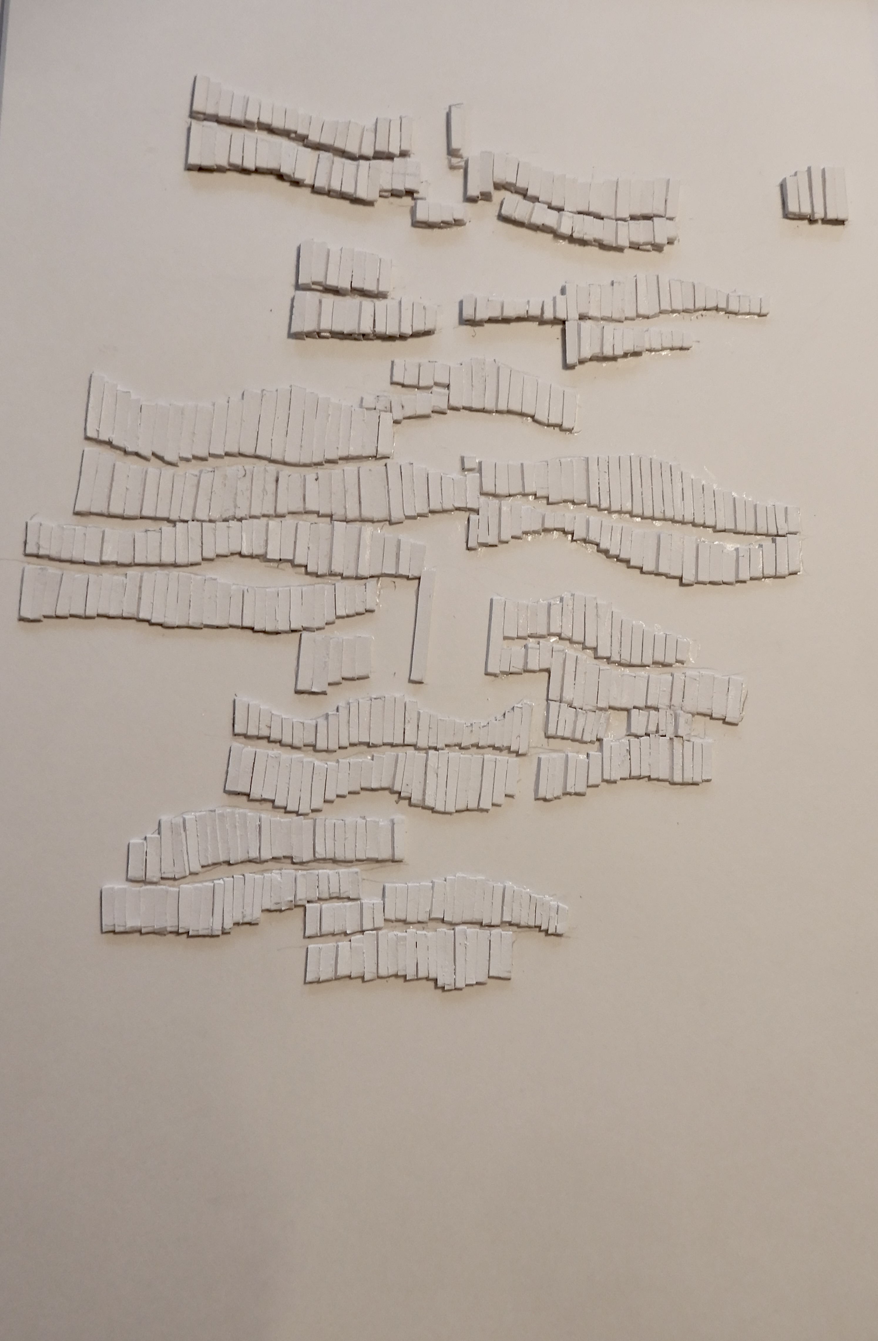 dem ich arbeite, gut beobachten. Ich habe gelernt, dass meine Malerei, meine Zeichnungen und Drucke dem Papier viel zu verdanken haben und dass die Wahl des falschen Papiers meine ganze Arbeit kaputtmachen kann. Das Befeuchten des Papiers, das Kneten, das Glätten mit den Händen, manchmal sogar das Zerreißen, war und ist immer noch ein wichtiger Teil meiner Arbeit. Ich fing an, aus den Resten von Papier Objekte zu machen, dann auch, Papier in meine Aquarelle oder Acrylarbeiten zu integrieren. Ich habe gelernt, das Papier selbstständig wirken zu lassen. Es im Raum oder an der Wand mit dem Schatten spielen zu lassen. Besonders sehr weiße, glatte Papiersorten wie Bristol bringen mir viel Freude. Dieses Papier, so rein und unschuldig, ist eine große Herausforderung für mich. Dieses Papier zu bearbeiten, zu integrieren ist für mich immer voll von Geheimnissen. |